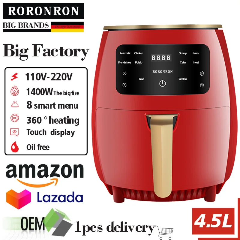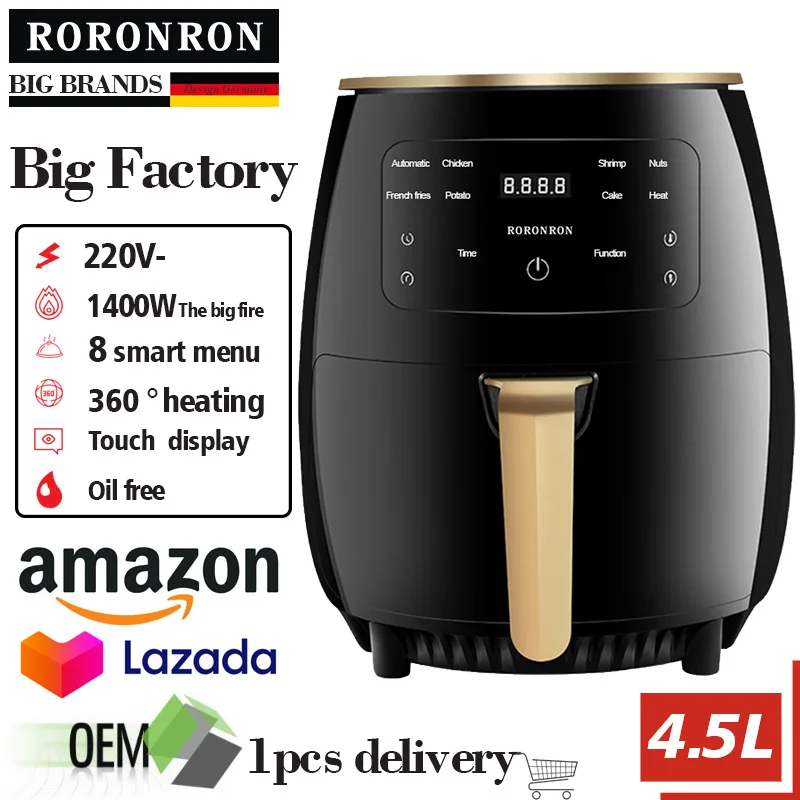 Electric 4.5L Large Capacity Smart Touch Control Air Fryer 8 Auto Menus 360 Rapid Circulation Oil-free Easy Clean Baking